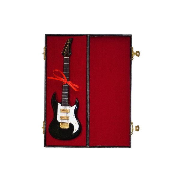 Μινιατούρα ηλεκτρική κιθάρα 18 εκατοστά σε βαλιτσάκι με βελούδινη επένδυση και βάση στηρίγματος, σε μαύρο χρώμα