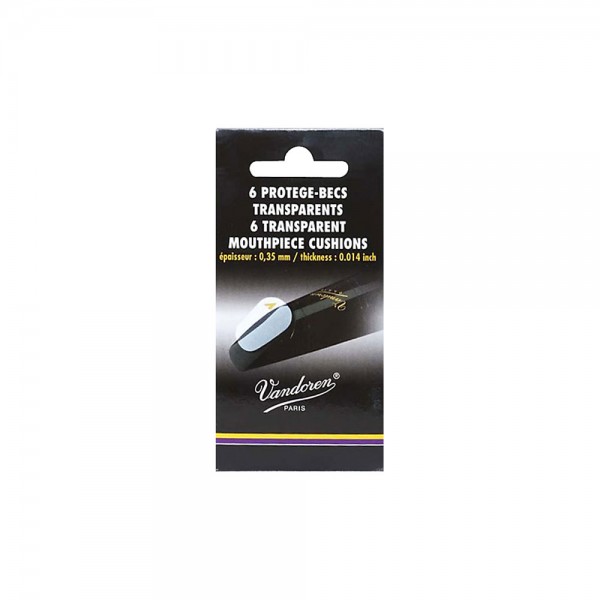 6 αυτοκόλλητα για την προστασία του επιστομίου σας, 0,35mm/ 0,014inch για αίσθηση παρόμοια με του επιστομίου, διαφανή, απλή & εύκολη τοποθέτηση στο “ράμφος” του, από τη Vandoren