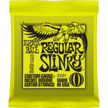 Οι Ernie Ball Regular Slinky χορδές αποτελούν από τo top σετ χορδών που επιλέγουν να χρησιμοποιούν οι κιθαρίστες παγκόσμια. Καλλιτέχνες όπως οι Eric Clapton, John Mayer, Steve Vai, θρυλικοί κιθαρίστες που επιλέγουν τις χορδές καθώς αποτελούν προϊόντα υψηλών προδιαγραφών, κατασκευασμένες με ακρίβεια, με τα υψηλότερα standards & με τα πιο συναρπαστικά χαρακτηριστικά για να εξασφαλίζουν συνοχή, βέλτιστη απόδοση & αντοχή. Από nickel plated steel σύρμα τυλιγμένο με hex shaped steel σύρμα.