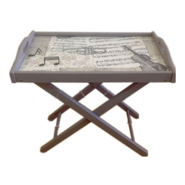 Ξύλινος δίσκος πρωινού με επιδαπέδια πτυσσόμενη βάση.Διαθέτει γυάλινη επιφάνεια με μουσικά σχέδια ( βιολί, τρομπέτα, κλειδί του σολ και νότες).