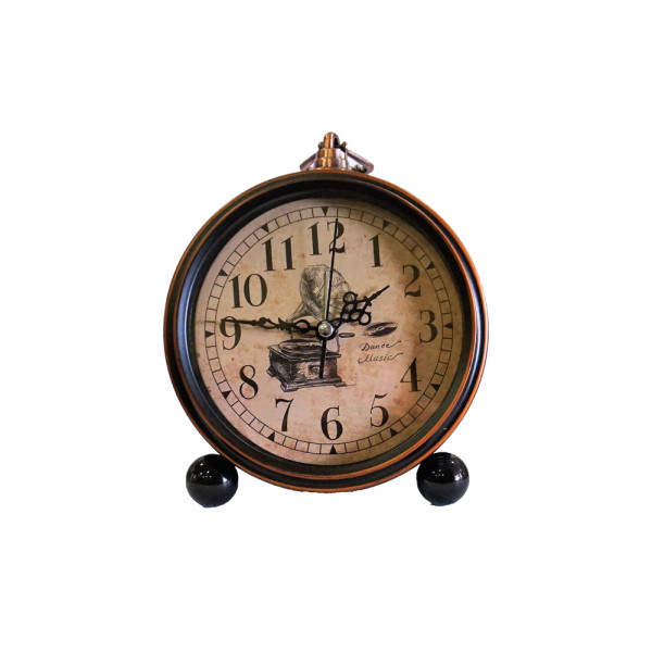 Επιτραπέζιο ρολόι ξυπνητήρι με σχέδιο γραμμόφωνο στο εσωτερικό του.