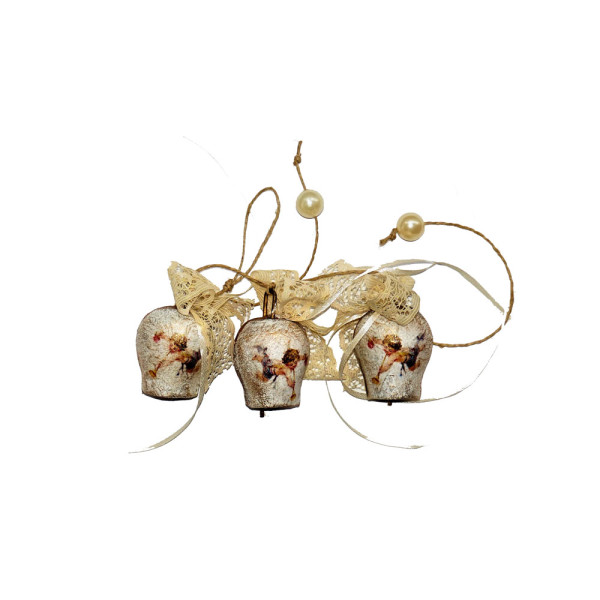 Μικρά χειροποίητα κουδουνάκια με αγγελάκια, διακοσμημένα με πέρλες και κορδέλες