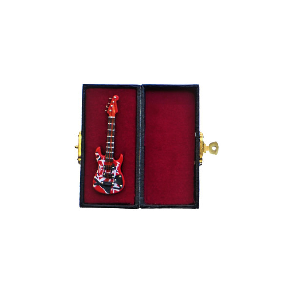 Μινιατούρα ηλεκτρική κιθάρα,σε βαλιτσάκι με βελούδινη επένδυση, μικρού μεγέθους,σε κόκκινο – άσπρο χρώμα