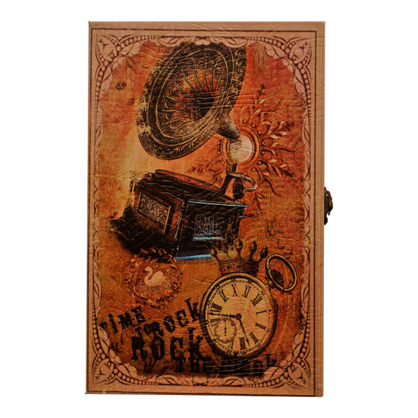 Ξύλινη κλειδοθήκη 6 θέσεων με δερμάτινη επένδυση και σχέδιο γραμμόφωνο.