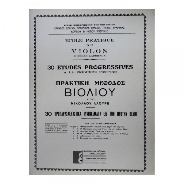 Πρακτική Μέθοδος Βιολιού- 30 Προπαρασκευαστικά Γυμνάσματα εις την Πρώτην Θέσιν, Nicolas Laoureux Vol.4, Εκδόσεις “Γαϊτάνου” (Νέα Έκδοση)