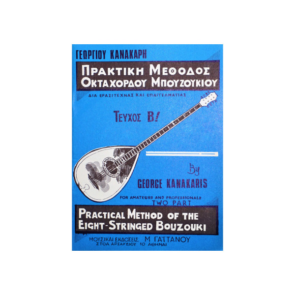 Σπάνιο συλλεκτικό βιβλίο του Γεωργίου Κανακάρη, Πρακτική Μέθοδος Οκτάχορδου Μπουζουκιού Τεύχος Β’, από τις εκδόσεις «Γαϊτάνου» Ηλ. Κοκονέτση
