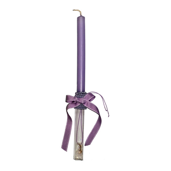 Χειροποίητη αρωματική λαμπάδα μωβ – βαζάκι με χρυσό κόσμημα κλειδί του σολ