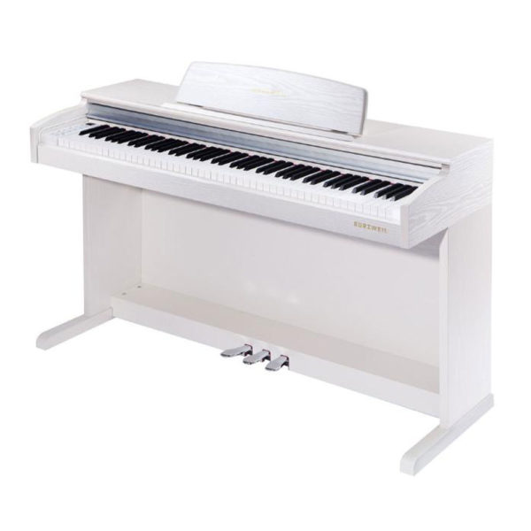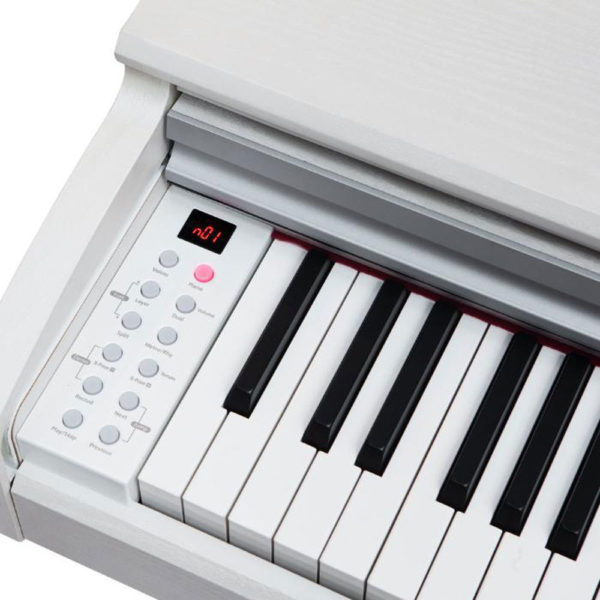 Ψηφιακό πιάνο με βαρυκεντρισμένο κλαβιέ 88 νότες. 128 νότες πολυφωνία, 20 ήχοι, 12 ρυθμοί, 50 demos, μετρονόμος. 3 πετάλια, 2 ηχεία, midi usb, mp3 aux in. Χρώμα λευκό. Περιλαμβάνεται σκαμπό στο χρώμα του πιάνου. Βάρος 51Kg
