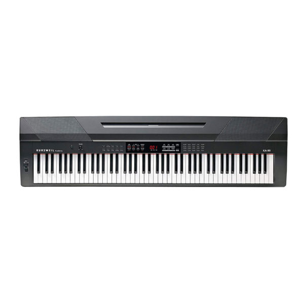 Stage Piano Kurzweil KA-90, Φορητό ψηφιακό πιάνο με 88 βαρυκεντρισμένα πλήκτρα και 4 επίπεδα ρυθμιζόμενης ευαισθησίας. 20 ήχοι, 128 νότες πολυφωνία, 50 ρυθμικά στυλ, display LED 3 στοιχείων, Reverb/Chorus/EQ, split/layer mode, transpose/tuning ± 100cents. Sequencer για ηχογράφηση σε 1 κανάλι και μέγιστη αποθήκευση 5 songs. Διαθέτει 4 ενσωματωμένα ηχεία με ενίσχυση 60W. 2 έξοδοι ακουστικών, MIDI OUT, Audio Input και θύρα USB για μεταφορά Midi δεδομένων. Χρώμα μαύρο ματ. Βάρος 12,3 Kg.
